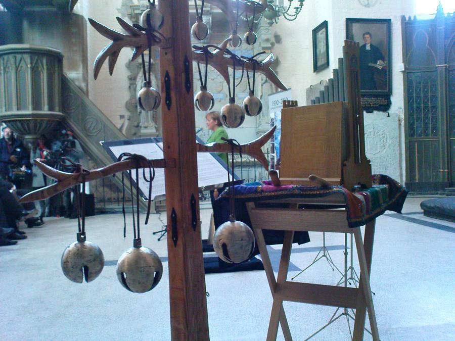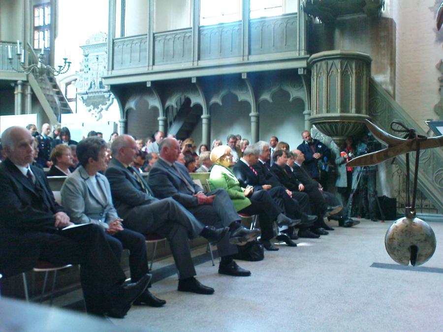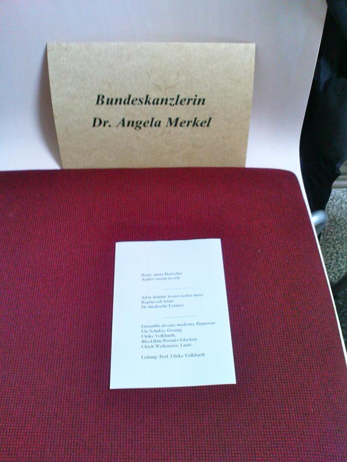 Nach der Produktion folgten Präsentationskonzerte in verschiedenen Besetzungen. Eines davon fand ich besonders aufregend, weil die Bundeskanzlerin Angela Merkel anwesend war. Dazu gehörten Sicherheitsvorkehrungen in der Kirche. Normalerweise kommt man als Musiker ein paar Stunden vor dem Auftritt ganz in Ruhe in die Kirche zum Aufbauen und Soundcheck. Diesmal durften wir nicht einfach hineingehen, sondern wurden von Hunden beschnüffelt, die Instrumentenkoffer und Notentaschen untersucht. Eine eigenartige Atmosphäre... Danach lief alles ganz normal. Wir hatten einen alten klösterlichen Litaneigesang im Programm, ein Wechselgesang zwischen Vorsängerin und Gemeinde. Frau Merkel saß in der ersten Reihe und sang mit wie alle anderen.